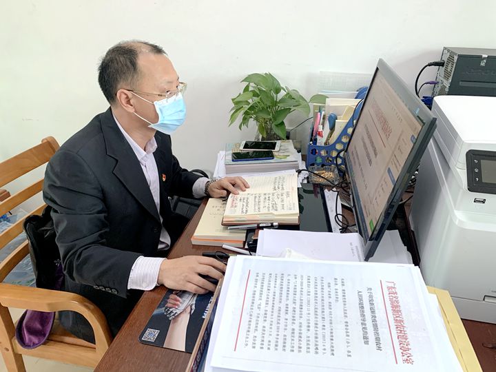 根據(jù)當(dāng)?shù)卮迕穸嗄陙硐碌貏谧鞯牧?xí)慣,他把田間地頭作為了防疫宣傳工作的重點(diǎn)場所。拎著小喇叭,奔走在田埂地頭的他,除了主動(dòng)向村民宣傳出入佩戴口罩、減少聚集、不走村訪友等防疫要求外,還積極向村民宣講疫情最新消息,引導(dǎo)村民堅(jiān)定信心、科學(xué)防控,做到不造謠、不信謠、不傳謠。 全村1412戶村民,他配合村委深入排查每一名村民的動(dòng)向及身體狀況,從外地回來人員返鄉(xiāng)前14天的去向更是核查重點(diǎn),他都詳細(xì)詢問并協(xié)助登記造冊。由于電腦操作不夠便捷,他便夾雜了一些手寫的臺賬資料,便于走村穿戶時(shí)仍能及時(shí)整理出村里人員健康動(dòng)態(tài)信息并按時(shí)向上級部門報(bào)送。特別是在架炮村發(fā)現(xiàn)一名廣州返鄉(xiāng)人員與新冠肺炎確診患者有密切接觸史后,他迅速指導(dǎo)開展落實(shí)居家隔離措施,并每天上門跟蹤該返鄉(xiāng)人員的體溫及身體狀況,直至其解除隔離,他才大大的松了一口氣。