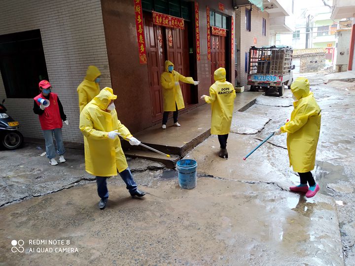 得到組織批準(zhǔn)的當(dāng)天下午,黃杰就自駕車,帶著集團(tuán)捐贈社區(qū)的120斤消毒水等防疫物資趕到了南街社區(qū)居委會。一去到,他就背起了40斤重的消毒噴桶,跟著居委會工作人員開始了走街串巷的消毒工作。為加強(qiáng)防疫防護(hù)知識的宣傳,有長期駐村扶貧經(jīng)驗(yàn)的黃杰還用黎話自編了一個(gè)順口溜:
