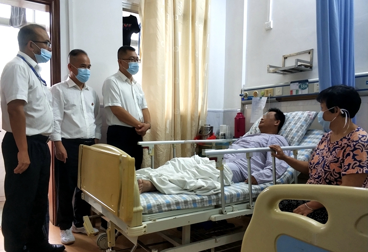 近日,集團工會和中油王港公司有關負責人前往茂名市人民醫(yī)院探望患有重大疾病的職工何某,向他送上組織的關懷和慰問金,轉達了集團黨委、集團工會和同事們的關懷和問候,鼓勵他以積極樂觀的心態(tài)接受后續(xù)治療,早日康復。