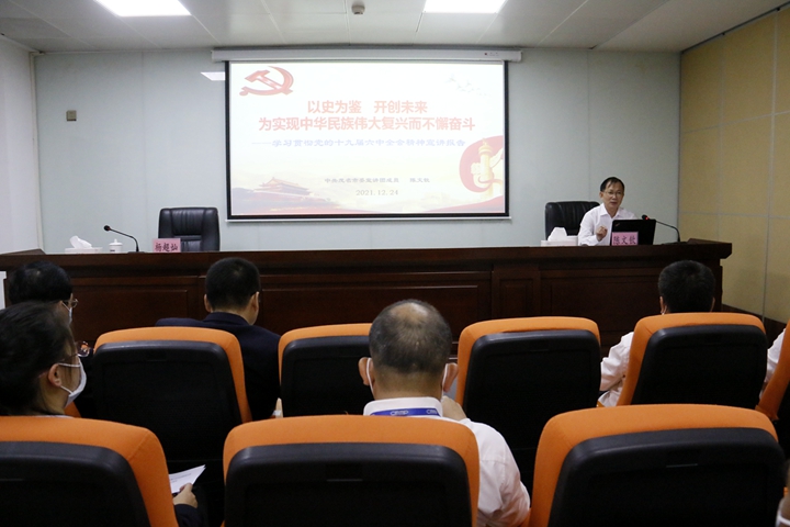 為深入學(xué)習(xí)貫徹黨的十九屆六中全會精神, 引導(dǎo)廣大黨員干部把思想和行動統(tǒng)一到全會精神上來,持續(xù)推動黨史學(xué)習(xí)教育走深走實(shí),12月24日,集團(tuán)舉辦學(xué)習(xí)貫徹黨的十九屆六中全會精神宣講報(bào)告會。茂名市委黨史學(xué)習(xí)教育宣講團(tuán)成員陳文欽應(yīng)邀作專題報(bào)告。集團(tuán)黨委委員、副總裁楊超燦主持會議。集團(tuán)黨委班子成員和集團(tuán)機(jī)關(guān)、各下屬企業(yè)黨員干部職工代表60余人參加報(bào)告會。