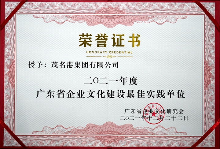 12月22日至23日,2021年廣東企業(yè)思想建設(shè)與企業(yè)文化建設(shè)工作年會在珠海隆重召開,來自廣東省企業(yè)文化研究會及相關(guān)協(xié)會、研究機(jī)構(gòu)的專家學(xué)者及企業(yè)家代表齊聚珠海,共同探討黨建引領(lǐng)企業(yè)文化高質(zhì)量發(fā)展的理念、路徑與方法。會議表彰了2021年廣東省企業(yè)文化建設(shè)最佳實(shí)踐單位、企業(yè)文化建設(shè)先進(jìn)單位、企業(yè)文化建設(shè)功勛人物、企業(yè)文化建設(shè)先進(jìn)個人,并舉行了頒獎儀式。茂名港集團(tuán)以良好的業(yè)績和顯著的企業(yè)文化建設(shè)成果,榮獲“廣東省企業(yè)文化建設(shè)最佳實(shí)踐單位”稱號。