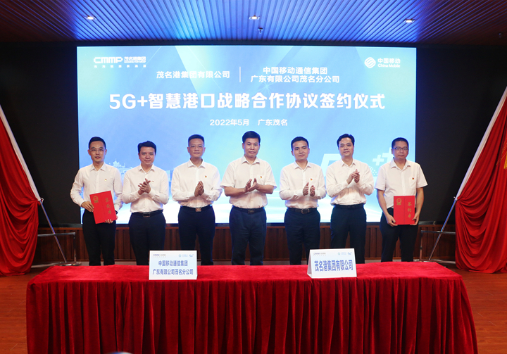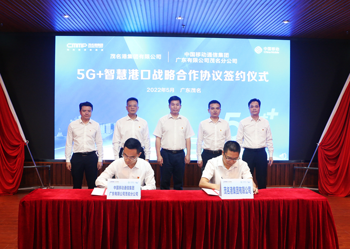 5月11日下午,茂名港集團(tuán)與茂名移動簽署“5G+智慧港口”戰(zhàn)略合作協(xié)議,雙方攜手打造“5G+智慧港口”。茂名市政府副秘書長吳再銘,茂名港集團(tuán)黨委書記、董事長王志華,黨委副書記、總裁肖炳璋,茂名移動黨委書記、總經(jīng)理林治國等一行出席簽約儀式。