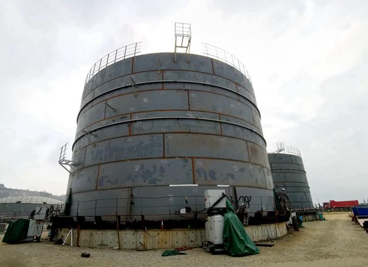 在豐收的季節(jié)里,茂名港博賀新港區(qū)東區(qū)化工倉(cāng)儲(chǔ)項(xiàng)目建設(shè)進(jìn)度喜人,碩果頻結(jié):該項(xiàng)目已全面進(jìn)入罐體安裝階段,目前共計(jì)14臺(tái)儲(chǔ)罐主體已經(jīng)安裝完成,儲(chǔ)罐附件及其他罐組儲(chǔ)罐安裝正在如火如荼地進(jìn)行中。