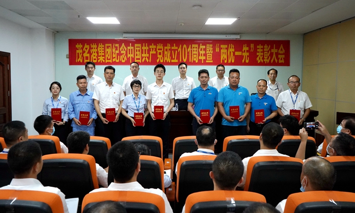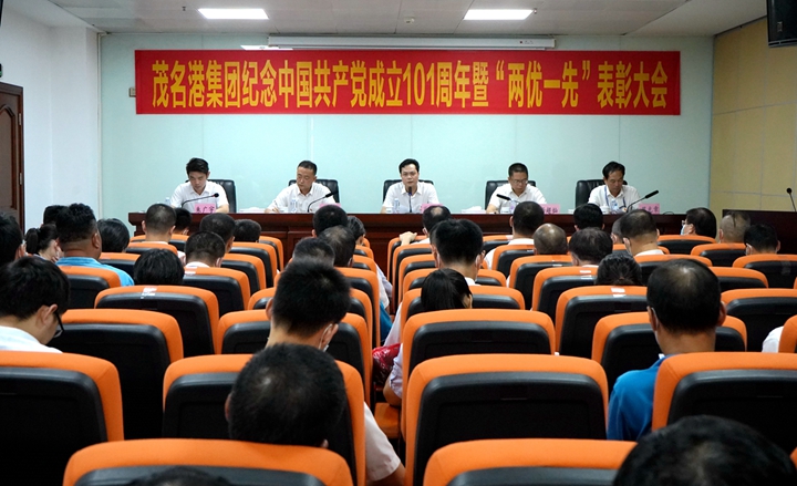6月29日下午,茂名港集團召開紀念中國共產(chǎn)黨成立101周年暨“兩優(yōu)一先”表彰大會。會議回顧了中國共產(chǎn)黨建黨101年來的光輝歷程,表彰了集團過去一年涌現(xiàn)出的優(yōu)秀共產(chǎn)黨員、優(yōu)秀黨務(wù)工作者、先進黨支部,動員集團各級黨組織和全體黨員干部銘記歷史、發(fā)揚傳統(tǒng),不忘初心、勵志前行,以實際行動迎接黨的二十大勝利召開。受集團黨委書記、董事長王志華委托,集團黨委副書記、總裁肖炳璋出席會議并講話,黨委委員、副總裁楊超燦主持會議,黨委委員、紀委書記、監(jiān)察專員陳軍,黨委委員、總工程師蔡光章,副總裁朱廣宇出席會議。