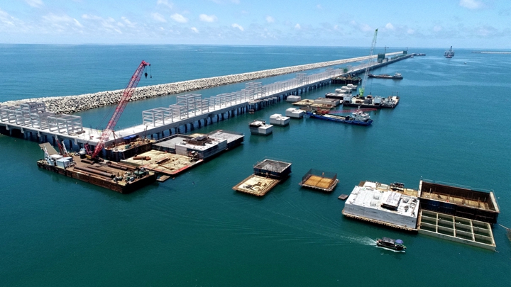 據悉,集團茂名港博賀新港區(qū)東區(qū)油品碼頭工程已具規(guī)模,碼頭沉箱安裝、陸域公用管廊、工作樓及水域面層已完成,水域管廊、管架及工藝管道安裝快速推進,項目總體進度完成92%;
