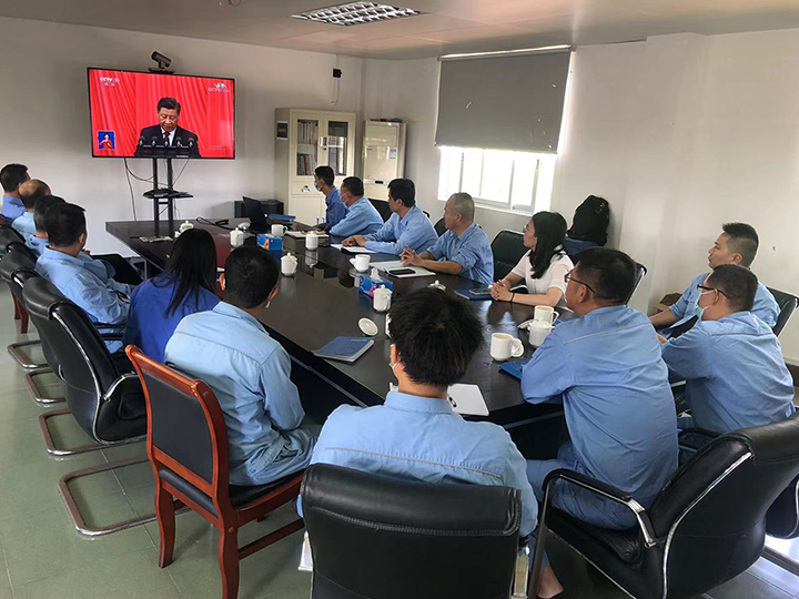 ▲集團領導班子成員參加濱海新區(qū)組織的集中觀看