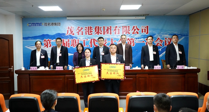 ▲2022年度茂名港集團(tuán)杰出團(tuán)隊(duì):集團(tuán)財(cái)務(wù)部、集團(tuán)口岸開(kāi)放專(zhuān)班工作組