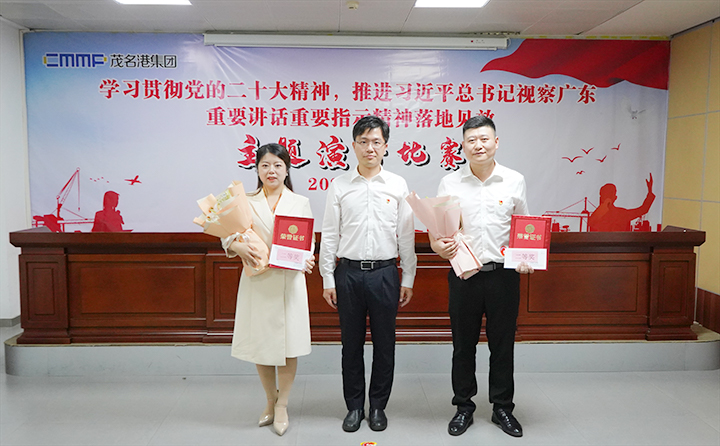 6月27日,茂名港集團舉行“學(xué)習(xí)貫徹黨的二十大精神,推進習(xí)近平總書記視察廣東重要講話重要指示精神落地見效”主題演講比賽決賽。集團黨委副書記、總裁肖炳璋,副總裁李昱祺出席活動,并為獲獎選手頒發(fā)了榮譽證書。