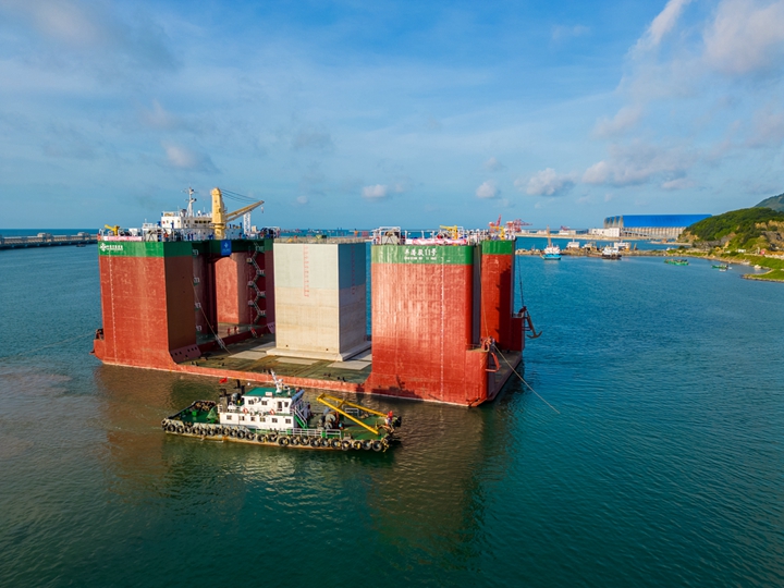 “沉箱已成功上駁就位!”隨著對講機中激動的聲音響起,茂名港博賀新港區(qū)30萬噸級原油碼頭項目首個沉箱成功出運,標志著該項目正式進入主體建設(shè)新階段。