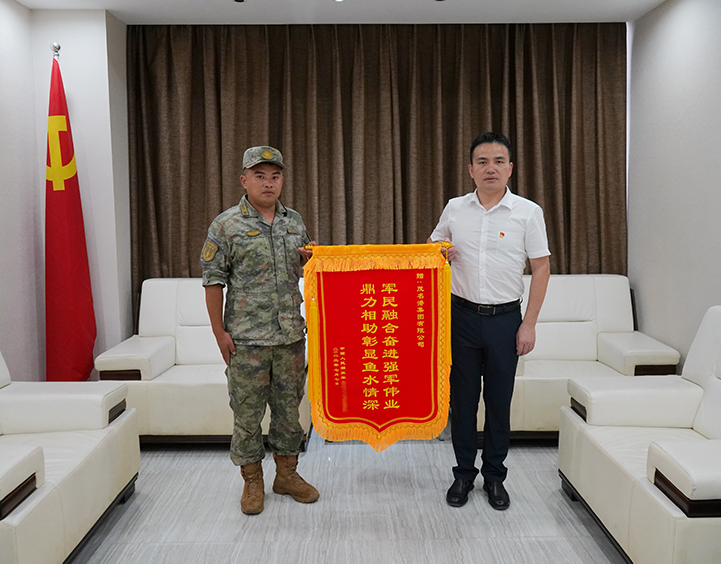 王志華對(duì)駐訓(xùn)部隊(duì)一行的到來表示歡迎。他表示,部隊(duì)擔(dān)負(fù)著保家衛(wèi)國(guó)重要使命,軍強(qiáng)才能民安,鮮艷的錦旗,不僅是部隊(duì)官兵對(duì)集團(tuán)的肯定與激勵(lì),更是責(zé)任與鞭策!集團(tuán)聚力把實(shí)事辦好,用心把好事辦實(shí),一如既往地關(guān)心和支持軍隊(duì)建設(shè),共敘軍民魚水情,用實(shí)際行動(dòng)踐行國(guó)企責(zé)任與擔(dān)當(dāng)。 駐訓(xùn)部隊(duì)負(fù)責(zé)人感謝集團(tuán)對(duì)部隊(duì)的支持與關(guān)心。駐訓(xùn)部隊(duì)表示,茂名港集團(tuán)在駐訓(xùn)期間,思駐訓(xùn)部隊(duì)之所思、想駐訓(xùn)部隊(duì)之所想,投入人力、物力幫助其解決實(shí)際困難,為確保部隊(duì)圓滿完成各項(xiàng)訓(xùn)練項(xiàng)任務(wù)提供了有力保障。接下來,駐訓(xùn)部隊(duì)將繼續(xù)強(qiáng)化實(shí)戰(zhàn)化軍事訓(xùn)練,加快提高備戰(zhàn)打仗能力,全力以赴把黨和人民賦予的各項(xiàng)任務(wù)完成好。