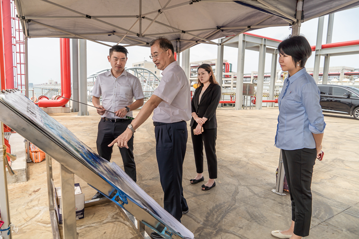 8月17日下午,粵港澳大灣區(qū)供應(yīng)鏈研究院執(zhí)行院長邱國宣一行到訪集團(tuán)調(diào)研。集團(tuán)黨委書記、董事長王志華,黨委副書記、常務(wù)副總裁朱廣宇及相關(guān)負(fù)責(zé)人陪同調(diào)研交流。 邱國宣一行深入博賀新港區(qū)一線建設(shè)現(xiàn)場,在東區(qū)油品碼頭E2泊位前,朱廣宇向客人詳細(xì)介紹了茂名港博賀新港區(qū)的項(xiàng)目規(guī)劃和項(xiàng)目建設(shè)情況。