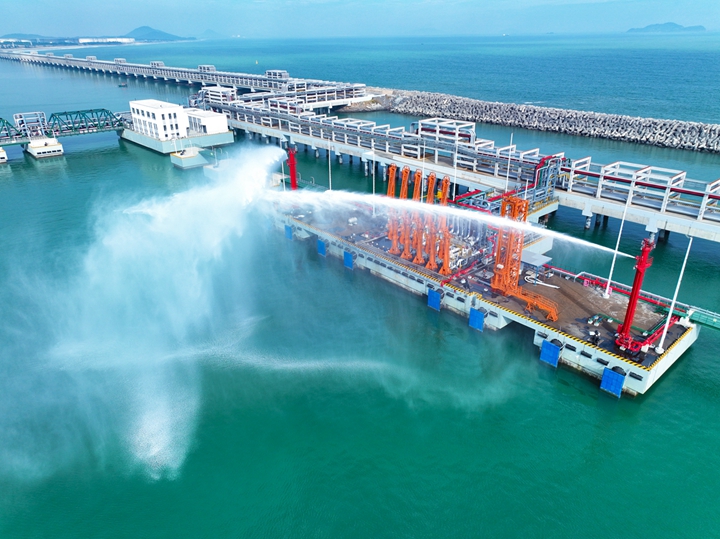 2023年12月27日,隨著8條“水龍”噴涌而出,博賀新港區(qū)東區(qū)化工碼頭消防系統(tǒng)聯(lián)運(yùn)調(diào)試工作取得圓滿成功,這標(biāo)志著繼油品碼頭之后,茂名港集團(tuán)化工碼頭也完成了由項(xiàng)目建設(shè)轉(zhuǎn)向生產(chǎn)運(yùn)營的關(guān)鍵一環(huán)。