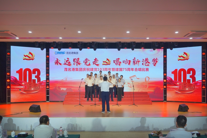 6月26日,茂名港集團舉辦慶祝建黨103周年暨建國75周年“永遠跟黨走,唱響新港夢”主題紅歌大合唱比賽。來自集團各黨支部的8支代表隊參加,以紅歌傳唱為契機、以紅色歌曲為傳播載體,重溫中國共產(chǎn)黨的崢嶸歲月和光輝業(yè)績,并以最美好的祝福,向黨的103歲誕辰、新中國成立75周年獻禮!
