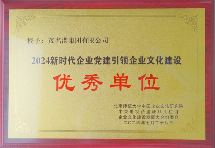茂名港集團(tuán)榮獲“2024新時(shí)代企業(yè)黨建引領(lǐng)企業(yè)文化建設(shè)優(yōu)秀單位”稱號(hào)