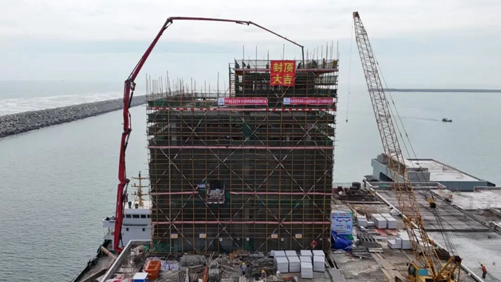 12月25日,隨著最后一方混凝土在工作樓頂層澆筑成型,茂名港博賀新港區(qū)30萬(wàn)噸級(jí)原油碼頭工程工作樓順利封頂。從項(xiàng)目藍(lán)圖到喜封金頂,不僅標(biāo)志著項(xiàng)目取得了重要的階段性勝利,也是30萬(wàn)噸級(jí)原油碼頭項(xiàng)目臨時(shí)黨支部在2024年取得的又一勝利戰(zhàn)果。