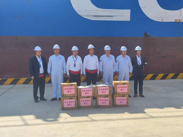 中遠(yuǎn)海運(yùn)能源公司副總經(jīng)理秦炯、中遠(yuǎn)海運(yùn)能源公司油輪事業(yè)部副總經(jīng)理陳俊偉等一行在茂名港集團(tuán)副總裁李昱祺的陪同下,來到?吭诿奂瘓F(tuán)東區(qū)化工碼頭E12泊位的“遵義潭”油輪上慰問船員,中遠(yuǎn)海運(yùn)能源公司廣州中心副總經(jīng)理施偉民與茂名港集團(tuán)商務(wù)部負(fù)責(zé)人等陪同慰問。