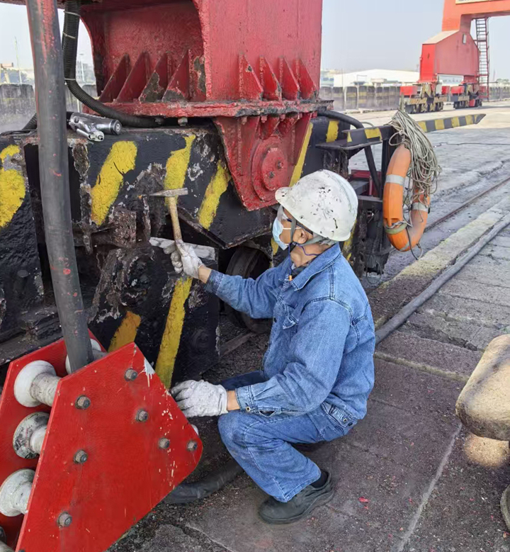 在港口經營公司,經常會看到幾個形色沖沖,身穿湛藍色工作服、頭戴安全帽、手戴一雙沾滿油污的手套,掛著沉甸甸的工具包忙碌在港口生產一線,努力保障公司生產設備正常運行的人。他們聚力攻堅、降本增效,想方設法在修舊利廢、小改小革等各項工作中辛勤耕耘,他們持續(xù)沖鋒,不辭艱辛地在40米高空吊機的鐵壁機件中維修整治,他們是一支關鍵時刻能扛得了重活、打得了硬仗、經得起磨練的黨員干部隊伍;他們就是港口經營公司“疑難雜癥”的“維修大夫”——機械維修班組。 檢修作業(yè)以“高標準”“精細化”為工作目標,堅持檢修操作“零隱患”班組管理“零隱患”作業(yè)原則。作為機械維修工,維修班的成員們嚴格遵守操作規(guī)程,提高檢修工作質量,加強安全管理,發(fā)現(xiàn)隱患立即整改,不放過任何工作中遇到的疑點難點問題,提升工作效率和力度,保證維修安全和質量。無論是凌晨還是深夜,他們只要接到電話,便即刻趕往搶修現(xiàn)場,積極完成搶修任務,確保系統(tǒng)的穩(wěn)定運行,個個成長為精通‘望、聞、問、切’的機械維修工人,擔當起港口經營公司機械維修班組的‘行家里手’和‘工匠技師’。